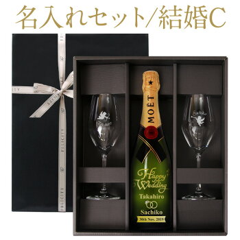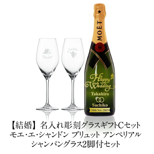 【お一人様3本限り】 【彫刻】【送料無料】 名入れ グラスギフトCセット モエ エ シャンドン ブリュット アンペリアル 正規 750ml グラス2脚付セット フルラベル 結婚 プレゼント ギフト ラッピング無料 ギフト箱入 引き出物 内祝い ブライダル ウェディング