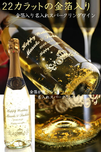 【名入れ彫刻の金箔入りスパークリングワイン 】 ボトルに直接名入れ致します。