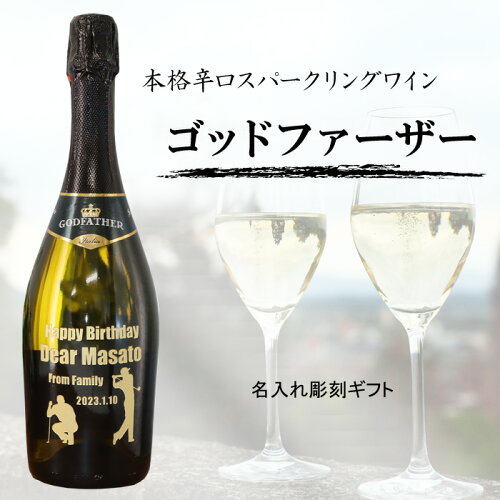 名入れ スパークリングワイン 「 ゴッドファーザー 」 誕生日 還暦祝い 結婚祝 名前入り 名入れ彫刻のお酒 名入れ ワイン 本格辛口スパークリングワイン ( ギフト 贈答 プレゼント ) 送料無料 退職 記念品 即日発送 父の日 男性 最短 あす楽