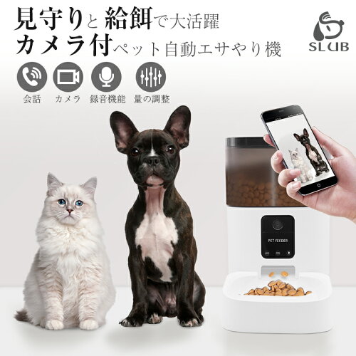 【カメラ付き自動給餌器の機能説明】 スマホ遠隔操作:外出先からスマホで遠隔操作する機能 録音再生:飼い主の音声を録音しておいて、給餌のときにその音声を再生する機能 カメラ:遠隔地からスマホ経由で室内の映像を確認する機能(見守り機能) マイク:飼い主の音声・室内の音声を双方向で聞く機能 タンク容量:4リットルの大容量、旅行で家をあけるときでも安心! 自動給餌回数:1日に設定できる自動給餌の回数は8回 1回の給餌量 :1回の給餌で餌を排出回数は最大20回まで設定でき、1回の出る量は約7gです。