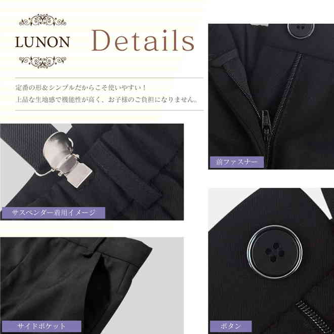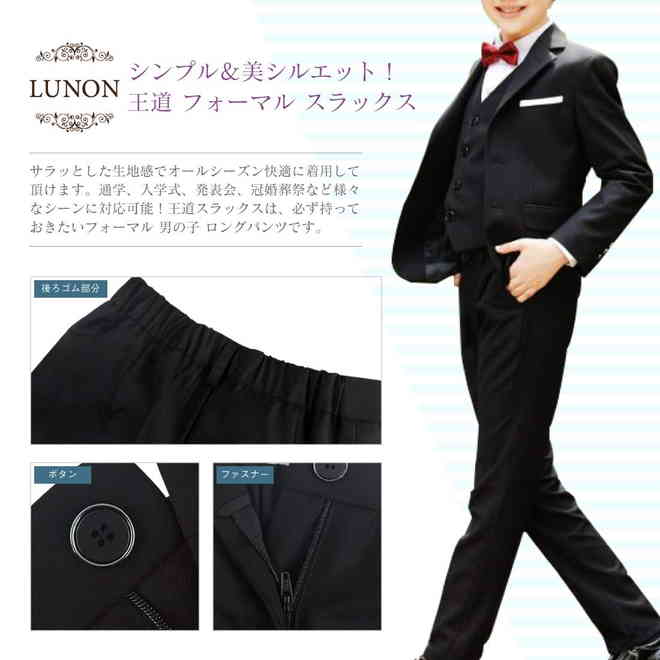 (ルノン)Lunon 男の子フォーマルズボン 黒 150 サイズ スラックス ジュニア キッズフォーマル 男の子 入学式 卒業式 結婚式 ピアノ発表会 正装 ブラックすぐにサイズアウトしてしまう時期だけど、一生にたった一度の思い出をお洒落にかっこよくきめたい♪