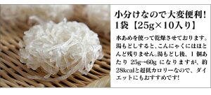 1袋25g×10入り小分けなので、食べやすくなっており、大変便利!!麺の代わりに!鍋料理に!サラダにも!使い方いろいろ!水あめを使って乾燥させております。