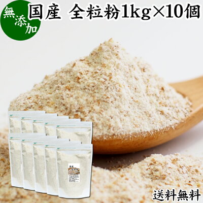 全粒粉 国産 1kg×10個 送料無料 粗挽き 小麦粉 国内産 無添加 100% 大容量 業務用 菓子用 強力粉 薄力粉 グラハム粉 パスタ ビスケット 低糖質 ダイエット 食物繊維 パン 食パン フランスパン バゲット バンズ ブラン ベーグル ポンデケージョ ホットケーキ パンケーキ フォ