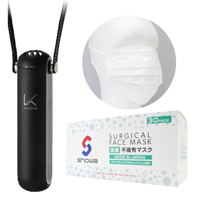 カルテック製除菌脱臭機 + ショウワ製サージカルマスク【ウイルス対策安心セット】送料無料 パーソナル空間除菌脱臭機/ターンド・ケイ首掛けタイプMYAIR+サージカルマスク ブラック オレンジ ホワイト KALTEC NAWA【まとめ買いがお得】